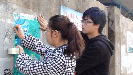 “大爷,这是我们自制的环保小贴士,上面写着生活中如何节约资源的方法,请您看一看。”科普宣传小分队的队员们在宣传栏张贴科普宣传海报,并向社区居民递送环保宣传单,用行动践行该分队“求知蓝,蓝意新社区”的理念。