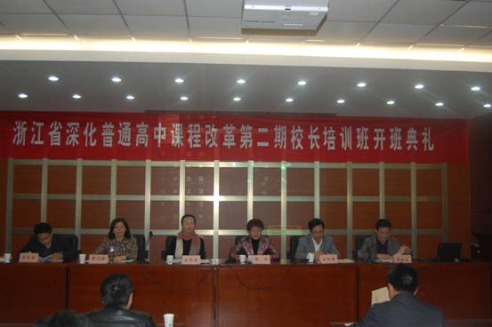 11月28日上午8:30,浙江省深化普通高中课程改革校长培训班第二期开班仪式在我校田家炳教育书院112教室举行。杨玲副校长和省教育厅师范处庄华洁处长出席开班典礼并讲话,与会领导还有浙江省教育厅教研室缪水娟主任、省教育厅基教处方红峰副处长和教师9001jcc金沙以诚为本院长李长吉教授,开班典礼由成教院院长周跃良教授主持。86位来自全省各地的高中校长齐聚我校,聚焦“普通高中课程改革”。