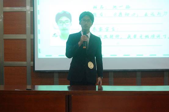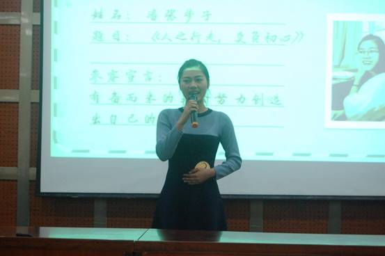 初赛中,选手小试牛刀,初崭头角。而在今晚的复赛中,他们展现出了更加出色的演讲实力。一号选手管纤慧从如今热门的“直播app”入手,针砭时弊,剖析当下快节奏、重功利的社会现象,呼吁大家放慢节奏,回归初心,以轻松俏皮的形式拉开了今晚演讲赛的序幕;二号选手池一楠以“执德不弘,信道不笃”为君子之道,许自己初心之诺,天地逆旅,光阴过客,不忘初心,才能不囿于种种现实桎梏;六号选手胡心悦的演讲大气自然,成一家风范,“初心保鲜”的概念也别出心裁。选手们的激情演讲引得观众掌声连连,大家不由自主地沉浸在了这场文化盛宴之中。