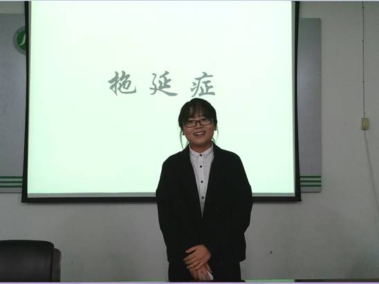 在演讲过程中,不少参赛选手分享了自己在追梦路上所付出的种种努力与艰辛,让在场的老师与同学们都深深感受到:实现梦想不靠空谈,不靠远观,而靠行动。其中,研161班的瞿一丹用生动的图片与例子向大家阐述了“梦想拖延症”的概念与表现形式,再次为现场的观众敲响了警钟:执行与意志是实现梦想的关键。