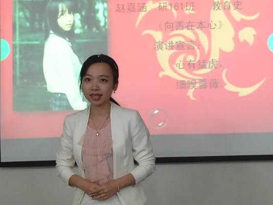 在这样一个展示自我的舞台上,参赛选手毫无保留地向大家诉说着远大而清晰的梦想。研164班的熊敏以“坚守初心”为题,告诉我们“不要因为走得太远,而忘记当初为何出发”;研163班的陆诗怡将自己充满诗意的梦想——“拥抱最美的太阳”向大家娓娓道来,诠释了自己在成长道路上始终坚持做一名优秀的教育工作者的信念。研161班的赵嘉涵以“向善”为目标,呼吁在这个世俗的年代,每个人都应该保持一颗行善的初心;研164班的袁锦红以“做一个快乐的普通人”为题,倡导每个人都应该学会享受生活……一人有一个梦想,一人有一个故事,28位选手们为大家展现了28个精彩而热血的梦想,赢得了台下观众和评委们的热烈掌声。
