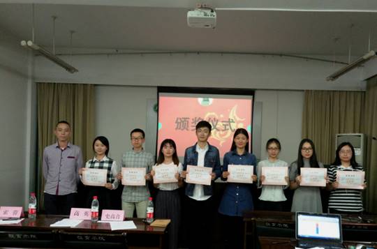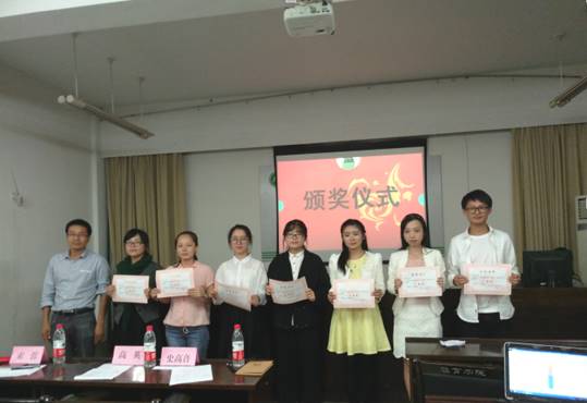 最后,评委以及在场的老师给获奖选手颁奖并与选手合影留念。至此,本次演讲比赛圆满结束。