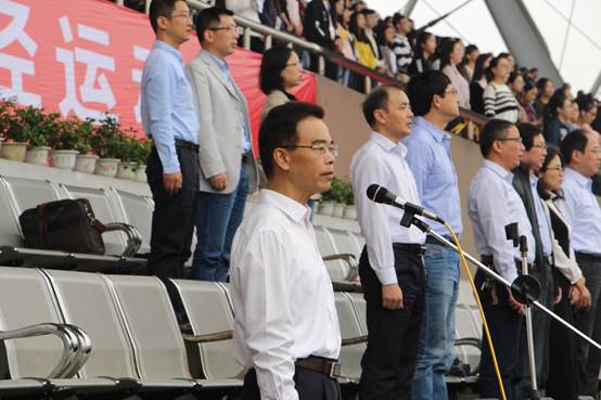 在国旗下,运动员和裁判员代表庄严宣誓,宣誓之后,校党委书记陈德喜教授宣布第四十二届运动会正式开始。