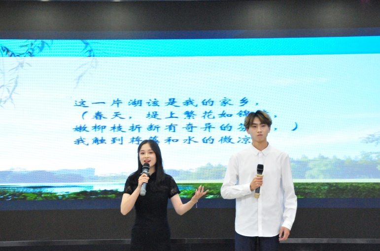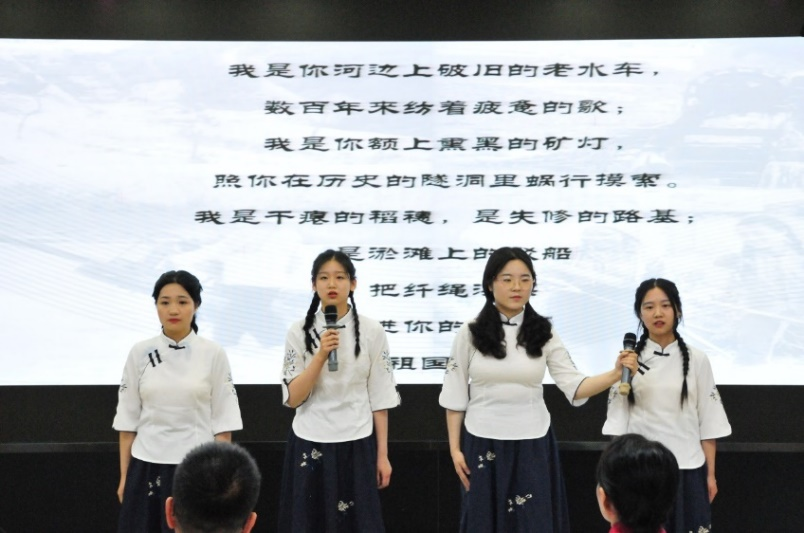 比赛共分为三个环节。无论是“诗咏年华,颂扬新韵”——备稿朗诵环节,还是“诗抒胸臆,情传古今”——即兴朗诵环节,10支参赛队伍声情并茂、抑扬顿挫的朗诵都引得现场观众掌声连连。“诗颂才思,文咏丹青”——知识竞答环节更是将现场的气氛推向了高潮。