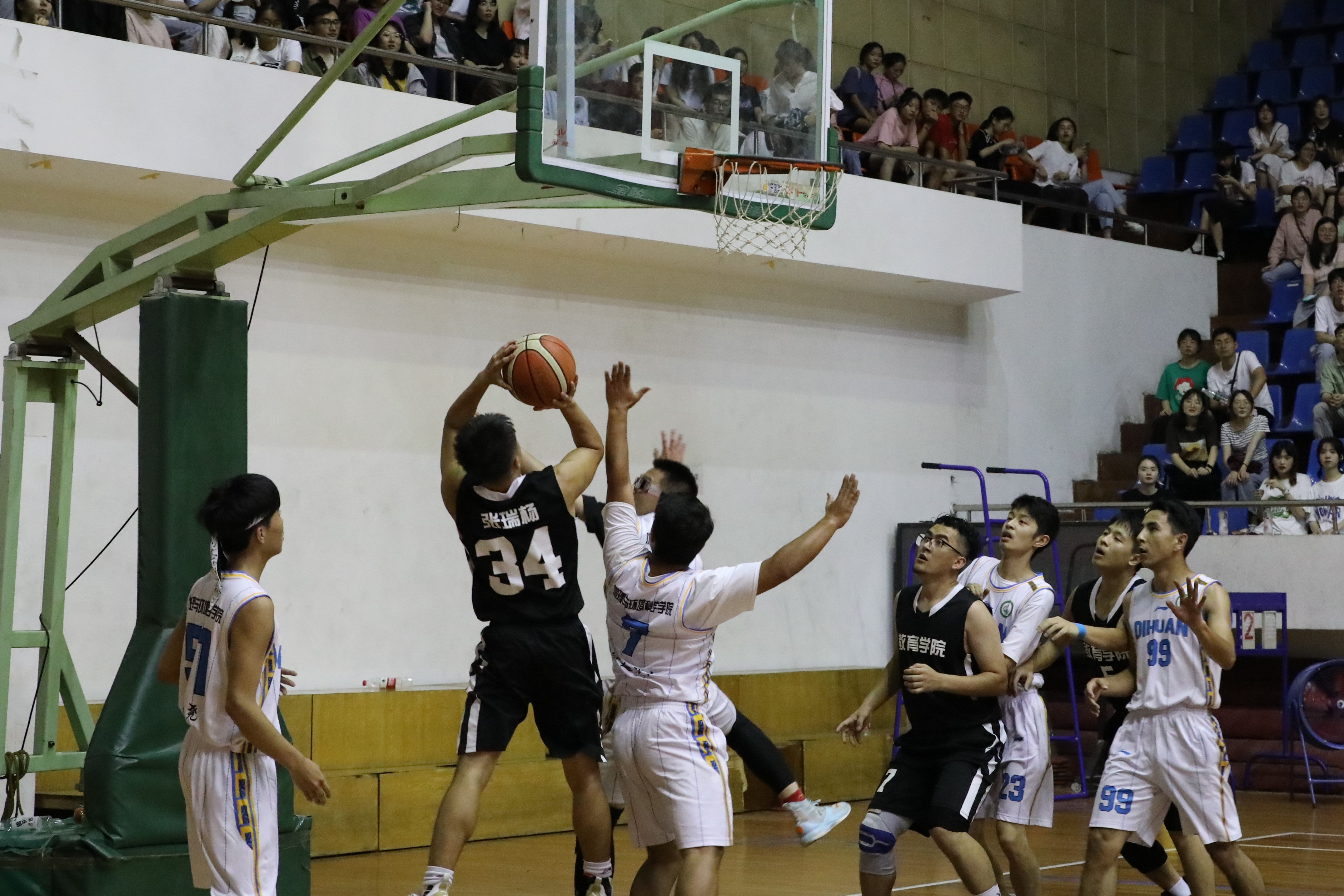 随着裁判一声哨响,比赛双方展开了激烈的对决,众多教院学子也纷纷到至现场,为金沙以诚为本官网的运动健将们加油打气,呐喊助威。金沙以诚为本官网篮球健将们在球场上努力拼搏、配合默契,24号艾沙抢断快攻动作迅速;3号张金鑫面对对手强硬防守突破上篮投进三分,取得9001jcc金沙以诚为本校男子篮球赛决赛首分;8号包立松串联全场,多次抢断以及送出助攻……教院球员们的一个个精彩表现博得观众阵阵喝彩。在欢呼声中,队员们乘胜追击,依靠防守与快攻,半场就建立了较大优势。