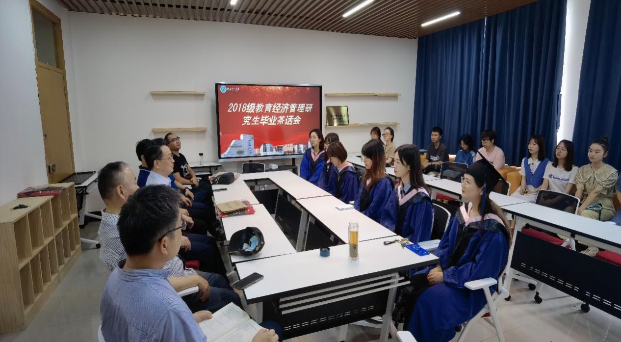 6月15日上午,教育经济管理专业在教师9001jcc金沙以诚为本17-711开展2018级教育经济管理研究生毕业茶话会。本次茶话会参会人员有导师组张天雪教授、杨天平教授、楼世洲教授、蔡连玉教授、王宪平副教授、周国华副教授、陈星副教授以及学生组2018级、2019级、2020级研究生。茶话会由张天雪教授主持。