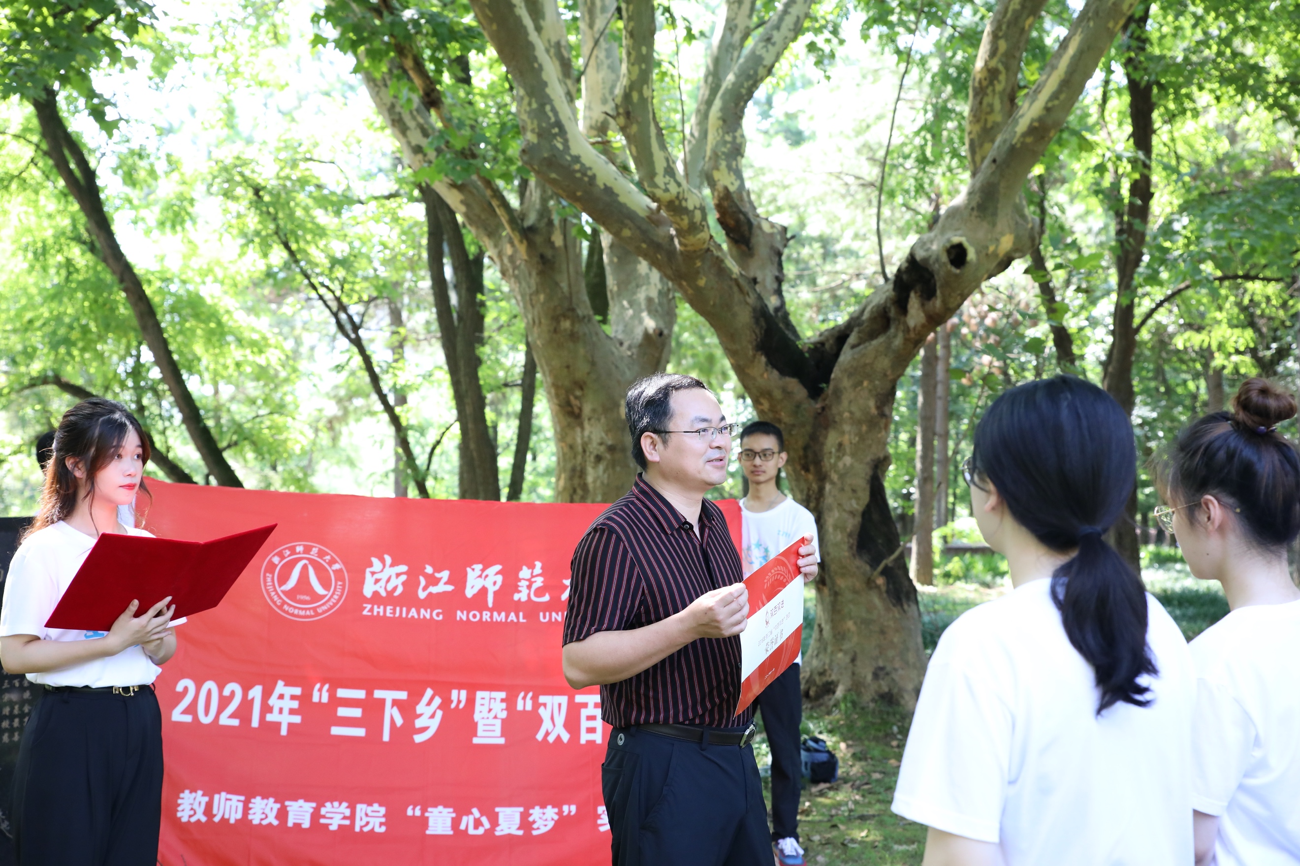 本次实践活动以“育童心夏梦,筑红色之魂”为主题,主要共分为两部分:其一,夏令营形式的教育支教实践;其二,浙江省丽水市龙泉地区以红色党建引领乡村振兴的路径调查。以“童心夏梦”作为实践队队名,加入对教育帮扶、共同富裕等热点问题的实地调研项目,金沙以诚为本官网结合小学教育、教育技术和应用心理的组合专业优势,将于此次暑期社会实践中充分锻炼师大学子的师范教学技能,支援基层教育,助力乡村振兴。