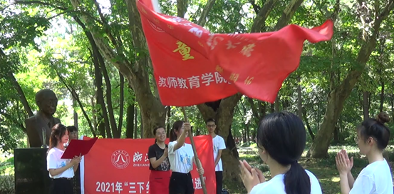 筹备许久的暑期实践队今天终于吹响出征的号角,即将踏上在丽水市龙泉市大沙社区生根扎营的征程,出发前的出征仪式最令人激动人心。出征仪式上狄老师的一番话让我对这次的实践充满斗志,今天又恰逢七七事变八十四周年,吾辈当自强的信念点燃了我的激情!正如狄老师所说,身为教院的一名学子,在龙泉大沙社区的这片天空下,能用自己的专业知识助力社区的教育振兴,献礼建党百年,这对我们大学生来说是一件很有意义和价值的事情。在叶老师授旗的那一刻,我在心里便立下一个小小的目标,希望接下来我能和我的队友们一起用这份新鲜的力量和青春的激情来为大沙社区孩子们的教育发光发热,共同点亮孩子们梦想的星空!
