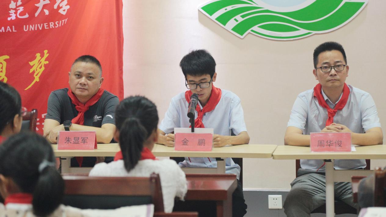 “我们实践队起名为‘童心夏梦’,‘心’不仅是龙泉儿童们天真明媚的童稚之心,也是我们澄澈坚定的赤子之心;‘梦’不仅是孩子们藏于心中的美好未来,也是浙师学子坚守始终的教育之梦,更是于红色党建潮流中不断向前的龙泉市民们对光明未来的憧憬与期盼。”童心夏梦实践队队员邵文萃作为大学生志愿者代表进行发言。她向各位领导和营员们介绍了本次实践队准备的特色课程以及调研方式,“我们有舞蹈课、声乐课、绘画课等丰富多样的课程,以及趣味运动会、心理团辅等活动……”不少小朋友听到这儿,纷纷兴奋地挺直腰板,双眼放光。此外,她也表达了实践队参与志愿活动的热情与决心,“我们一定珍惜这次机会,将专业知识与实践相结合,努力做出成绩!”
