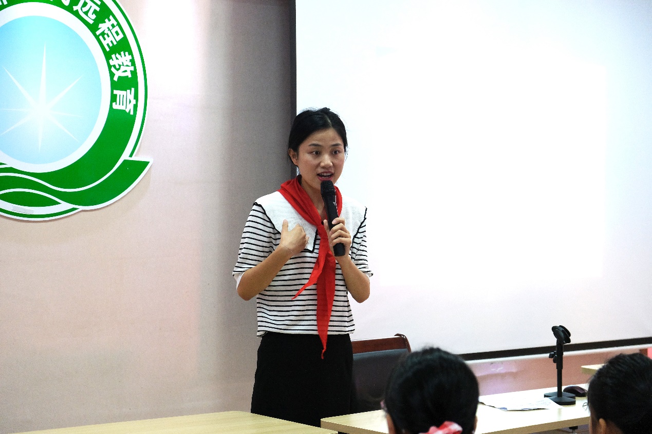 蒋晓莉老师为小朋友们带来了有关少先队知识的主题讲座。在讲座开始前,蒋老师让同学们以一位少先队员的坐姿和精神面貌来听这次讲座。