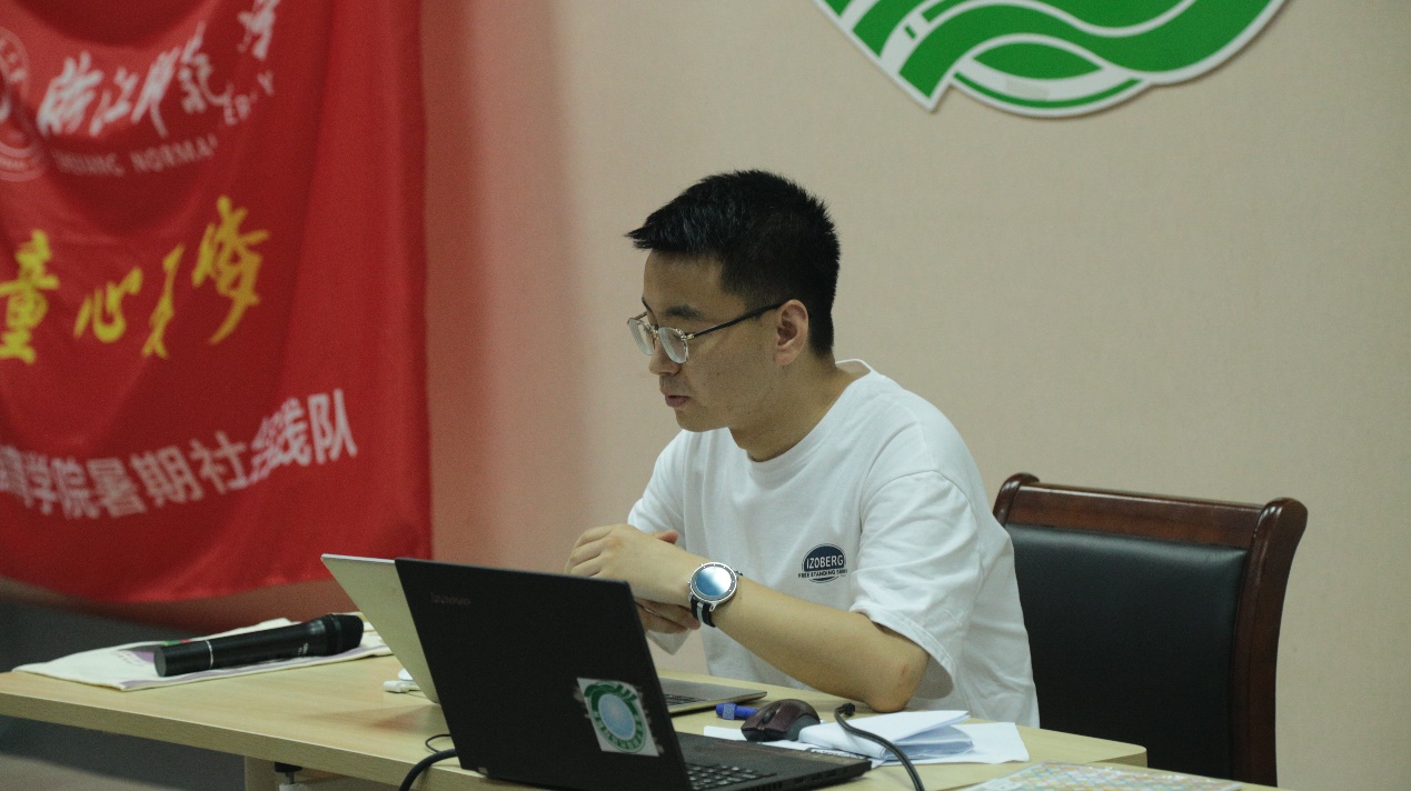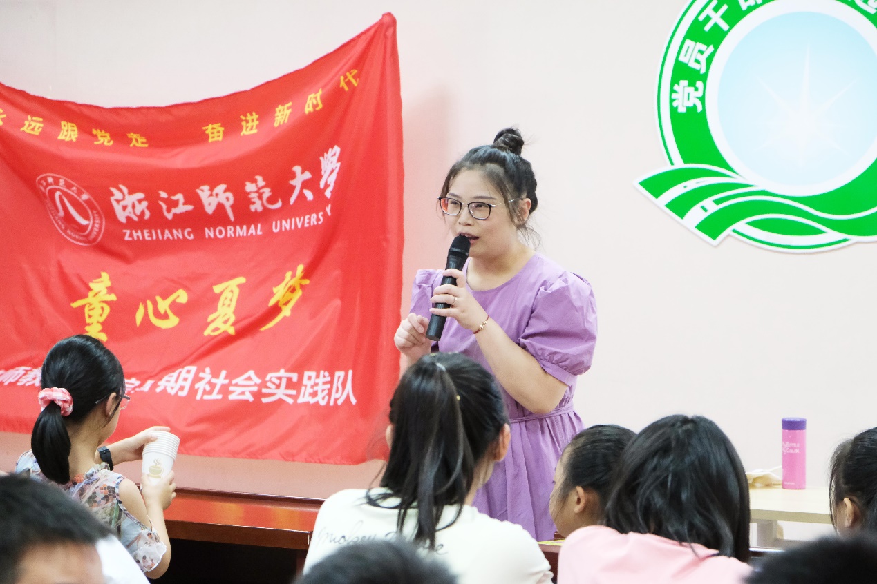 “盈满梦想的夏夜/龙泉与浙师心相连/追梦青春里/每一分一秒都不想停歇……”在每日例会前,实践队队员一起唱队歌。