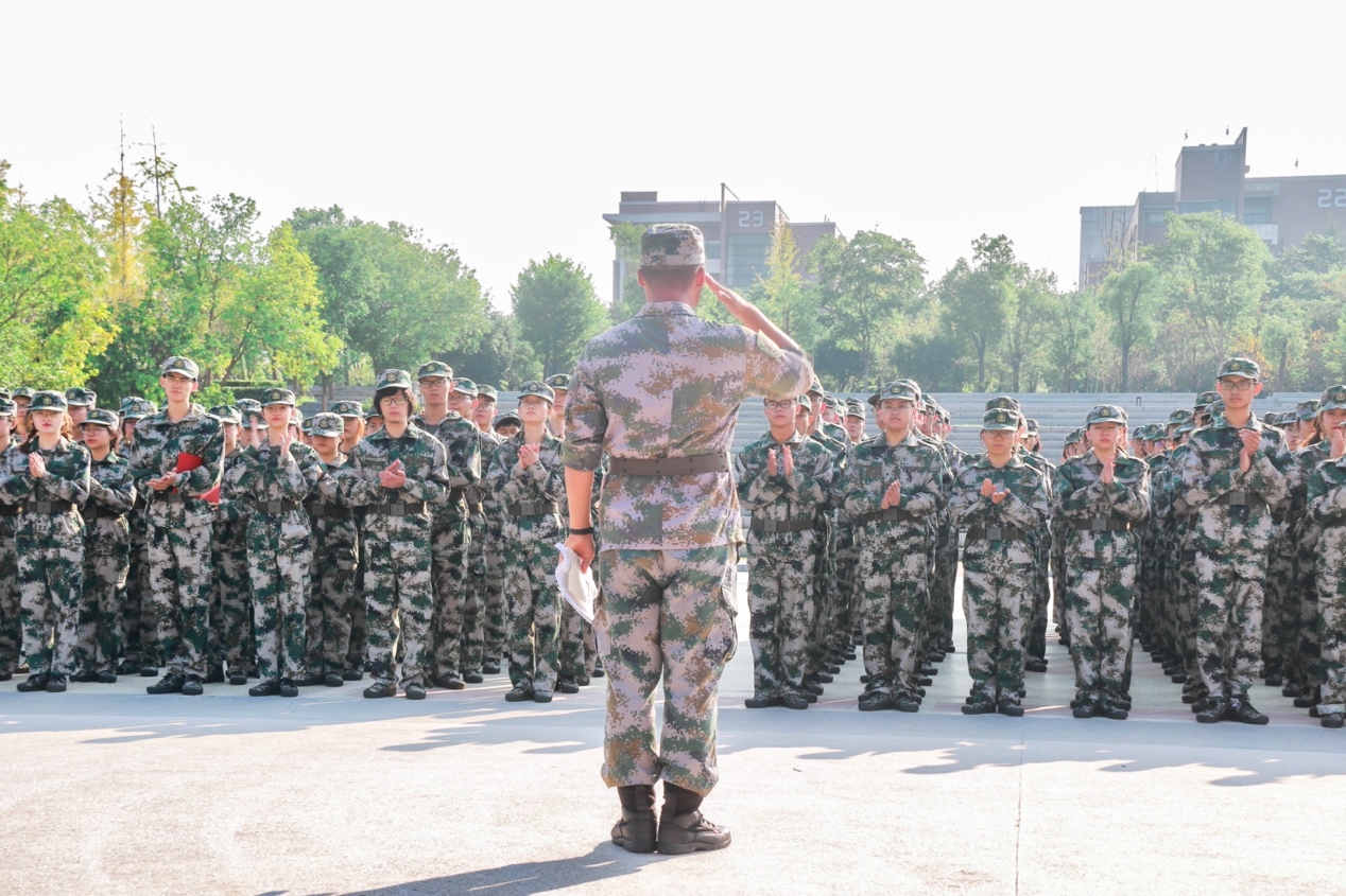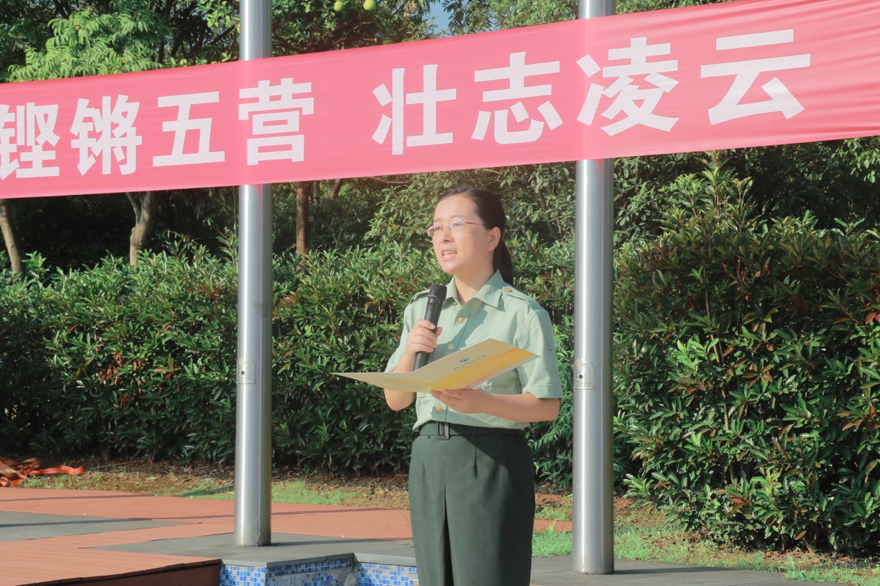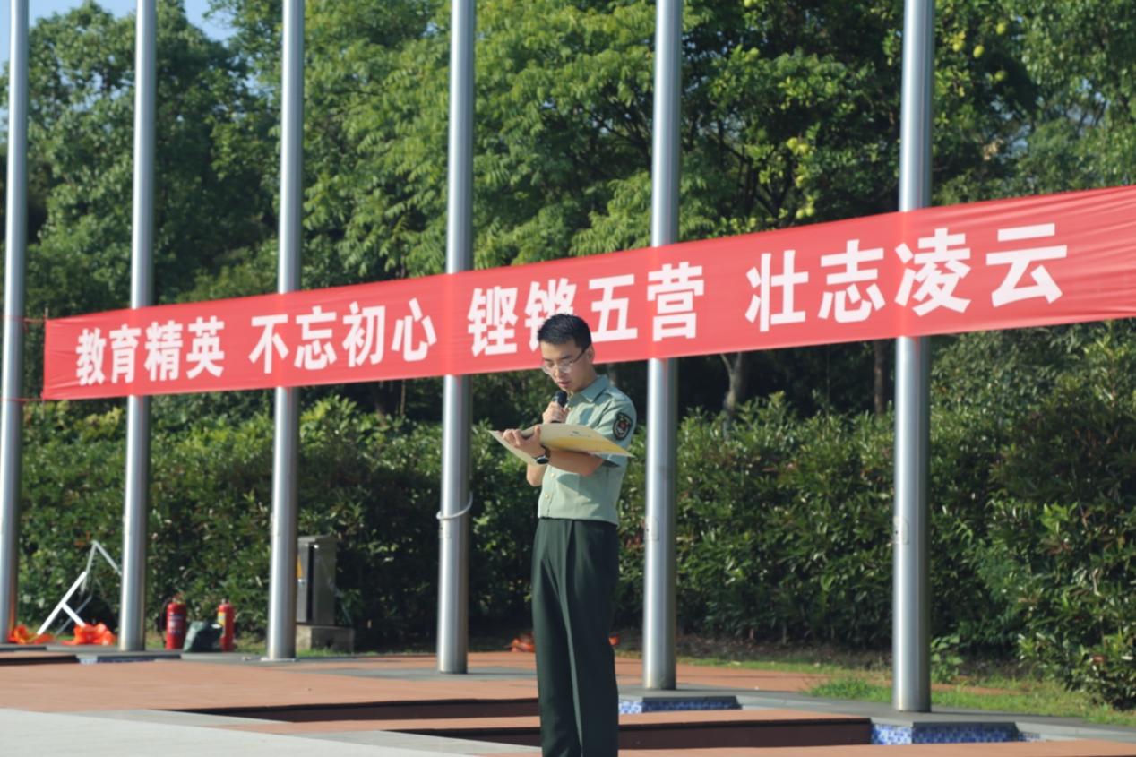 军训五营营长代表全体教官对同学们表达期许,军训不仅是我国国防教育法的要求,也是我校人才培养工作的重要组成部分。通过烈日考验,帮助同学们培养艰苦奋斗和吃苦耐劳的优良品质,感受集体生活的真谛,加强组织纪律性,促进精神品格的形成与发展,使自己的思想觉悟和行为方式都达到一个新的境界。