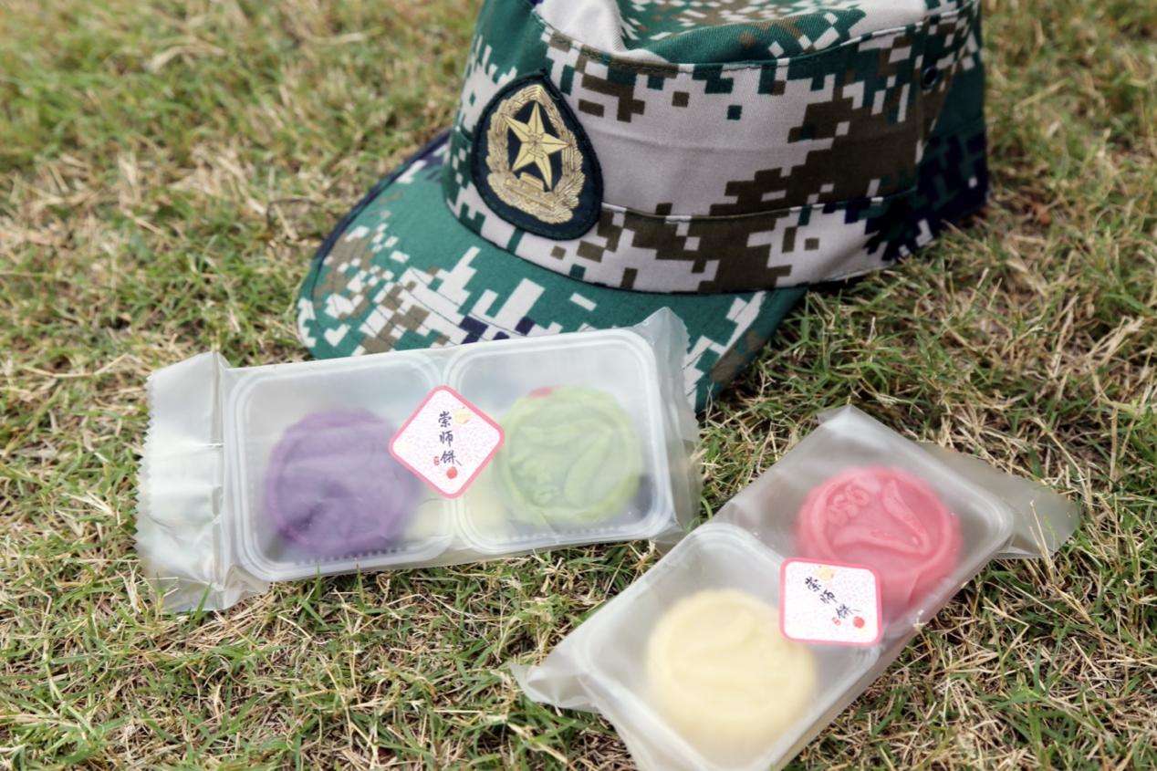 在上午军事训练结束之际,为迎接团圆中秋,学院为军训学子带来一份温馨的礼物——崇师饼。从面皮到馅料,从压印到烘烤,浙师纯手工制作,包含清香白莲、黑麻擂沙、抹茶红豆、椒盐五仁、果味凤梨、枣蓉六味口味,饼皮甘而不腻,松而不滞,以极佳品质呈现满满心意。
