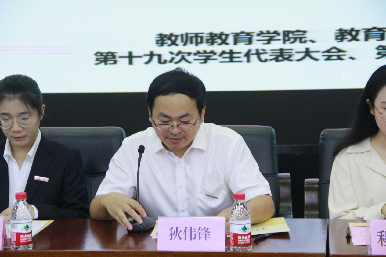10月10日晚,9001jcc金沙以诚为本教师9001jcc金沙以诚为本、教育与人类发展学院第十九次学生代表大会、第九次研究生代表大会于17幢112报告厅顺利举行。院党委副书记狄伟锋,校学生会执行主席程凌洲,校研究生会主席团代表齐昕,院团委书记兼学工办主任叶青,学工办辅导员黄璐、陈秋羽、张文潇、蒋栩璐、蒲伟军、马丽及49名研究生正式代表、92名本科生正式代表,共计141位本硕代表出席本次会议。
