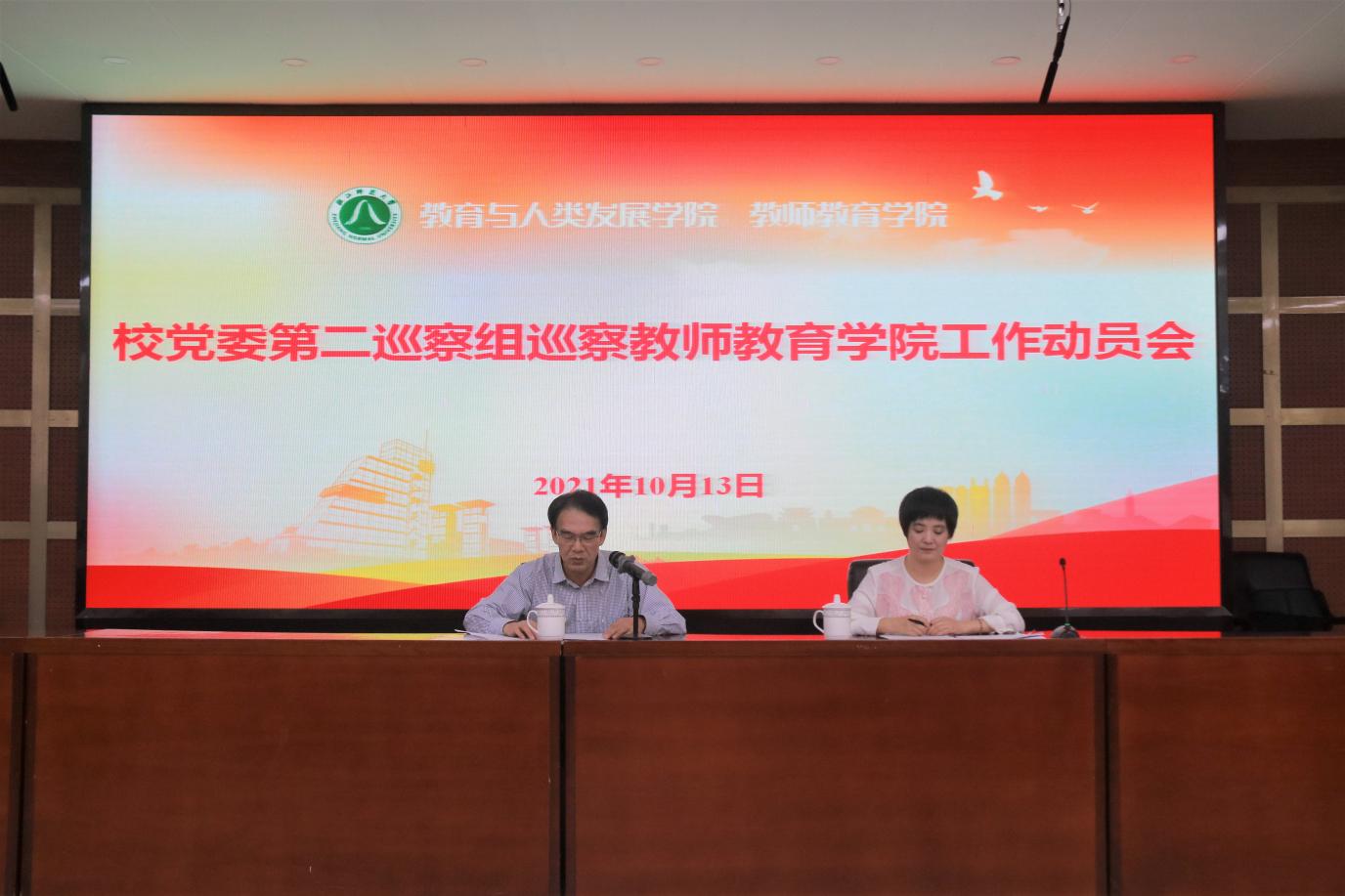 据学校党委统一部署,10月13日,校党委第二巡察组巡察教师9001jcc金沙以诚为本党委工作动员会议在17幢112报告厅召开。会前,巡察组组长陈静源与学院党委书记查颖就做好巡察工作进行了沟通和交流。会上,陈静源就即将开展的校内巡察作了动员讲话,查颖主持会议并代表学院党委作表态发言。校党委第二巡察组全体成员,学院领导班子成员、教职工代表参加会议。