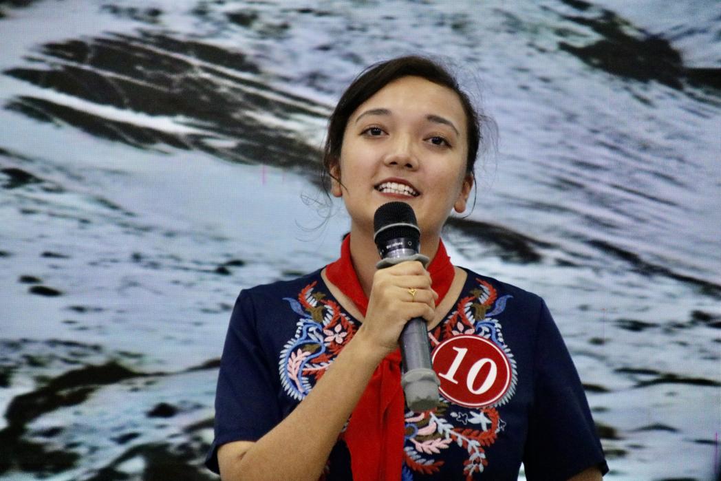 在即兴演讲环节,选手们依然文思敏捷,见解独到。3号选手祝彬彬围绕“善”展开了一系列论述,大到获得诺贝尔和平奖的特蕾莎修女,小到一次次推门,一次次让座,比赛前邻座同学的体贴等等,阐述了她对“何为善”以及“为何善”的理解,引起现场掌声轰动。