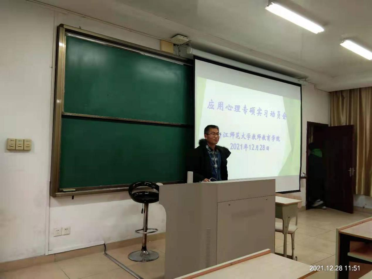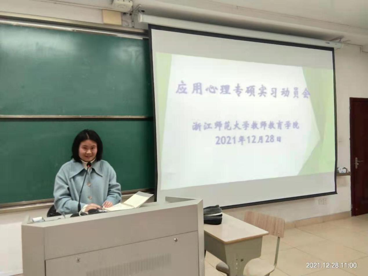 为更好地营造应用心理专业学位研究生重视实践实习的氛围以及强化应用心理专硕实习实践规范管理,促进学生认识实习的意义和熟悉实习的章程,应用心理专硕学位点于2021年12月28日上午在5幢101召开2020级应用心理专硕实习动员会。教师9001jcc金沙以诚为本副院长钱旭升老师、研究生办主任刘冬仙老师、学位点负责人陈海德老师以及2020级应用心理全体专硕同学出席动员会。