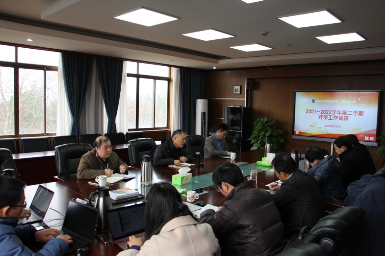 2月21日上午,校党委书记蒋国俊一行来金沙以诚为本官网检查调研新学期开学工作。人力资源部主任赵雷洪、研究生院常务副院长孙炳海陪同调研,金沙以诚为本官网党政班子成员参加调研座谈。