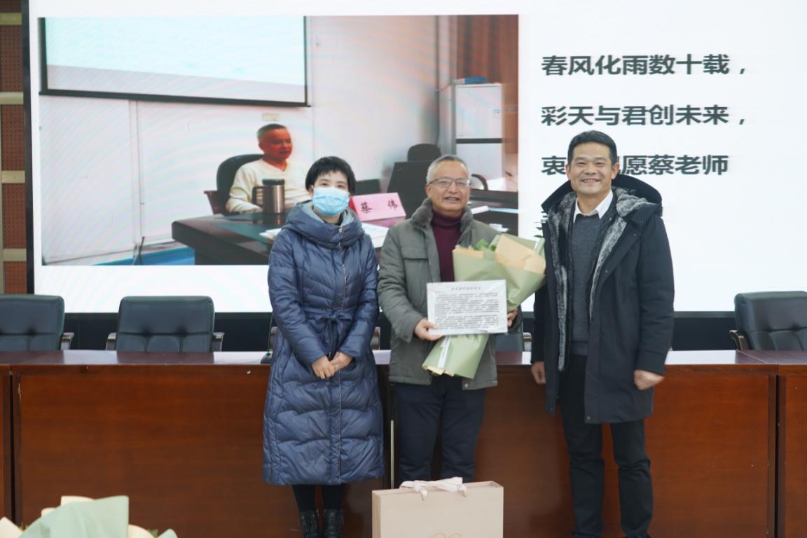 最后,周跃良院长和党委书记查颖向退休教师送上退休纪念品和退休贺词,并与老同志们合影留念。整个退休仪式暖人、暖心又暖情。