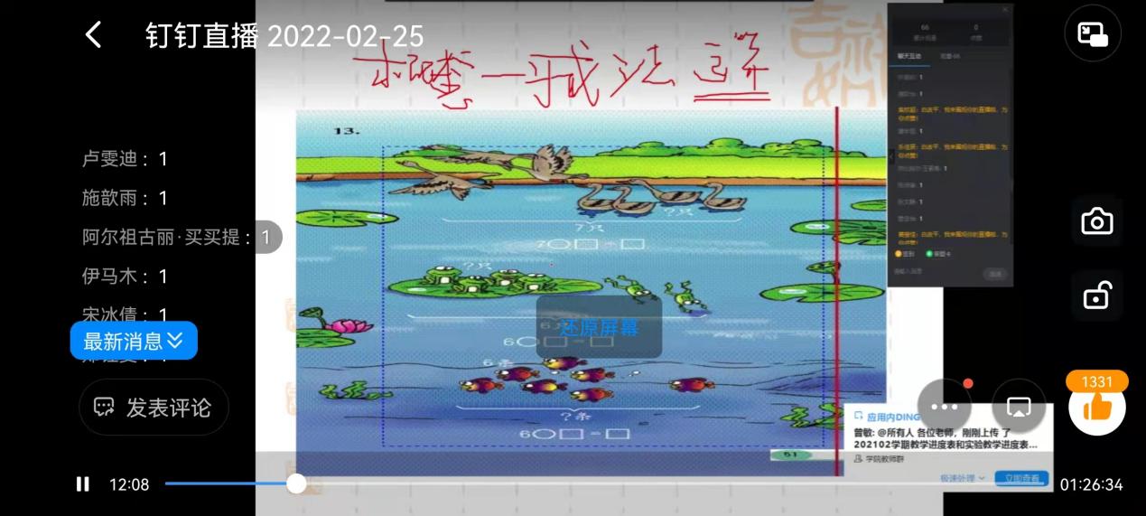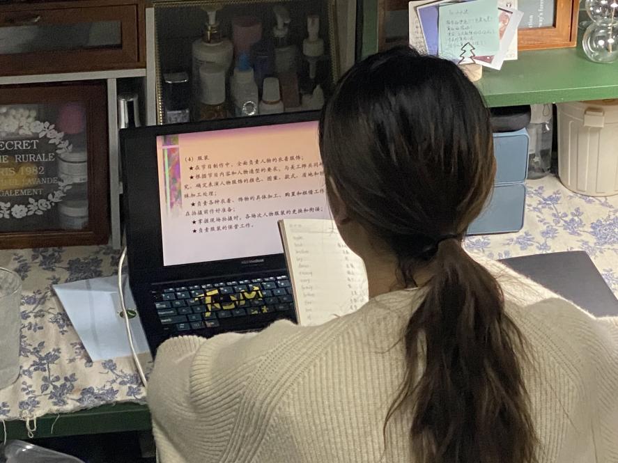 线上课堂中,同学们集中精力听教师授课,翻阅相关学习资料,整合、处理、转化学习内容,掌握线上课堂核心,做好相关课堂笔记,为学习、理解、记忆以及实践应用做好准备。虽然是线上学习,但学生丝毫不减学习热情,在课上课下积极思考提问,在疫情当头自觉完成学习任务。