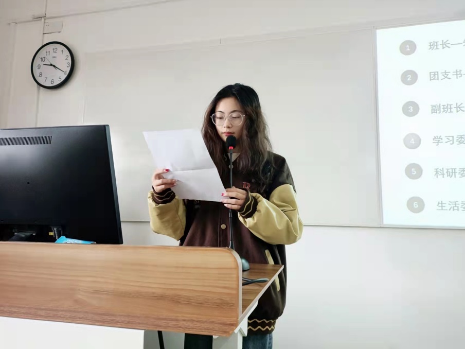 在班委工作述职中,班委们首先对上个学期的工作进行了回顾,与各位同学分享每次活动幕后的有趣细节,总结自己的心得体会,反思工作上的不足,并明确未来的改进方向。建立班级学习互助小组、丰富班级志愿活动形式、加深对同学们的了解……更多工作细节和创新形式也将会在之后的班级日常中逐渐落实。
