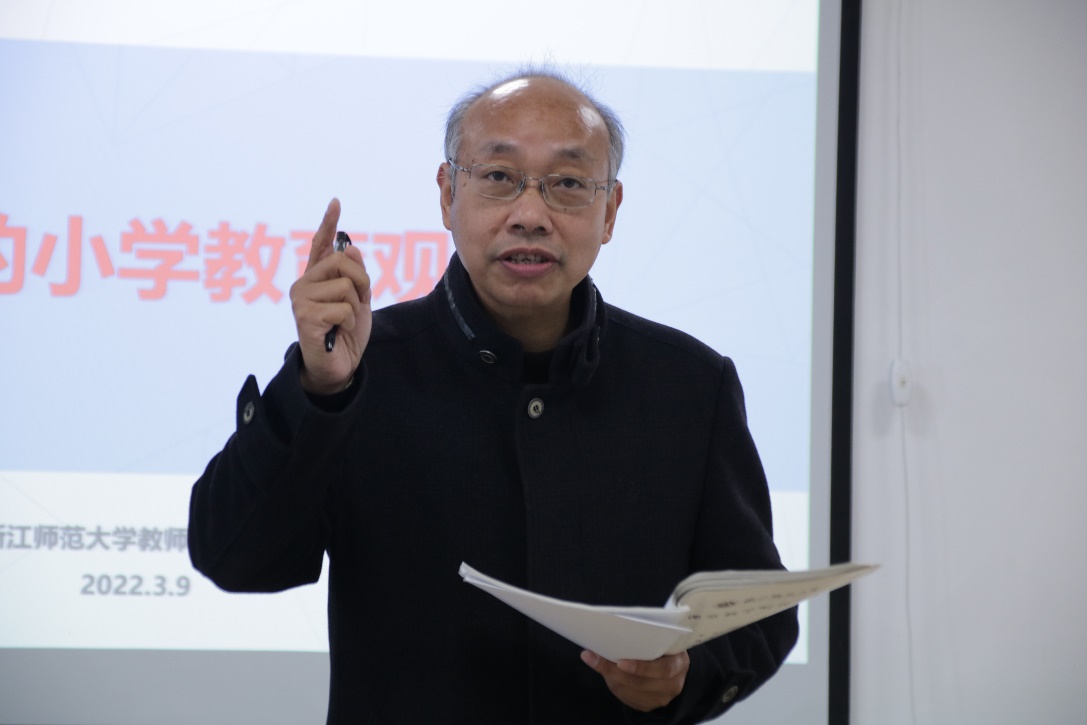 听完大家的讲述,郎建胜老师分享了他的小学教育观。郎老师认为,树立正确的小学教育观非常重要,这关系到我们如何成为一名优秀的小学教师。他指出,教育的过程是教师引导学生全面、可持续发展的过程,因此教师应该是孩子的人生导师。作为未来的小学教师,更要加强道德修养,明确目标并持续努力,还要有终身学习的理念和行动。郎老师有多年的小学教学工作经验,曾经是一名小学校长,后来成为大学教师,他的“成长”经历和他所分享的观点深深地触动了班级每一位同学。