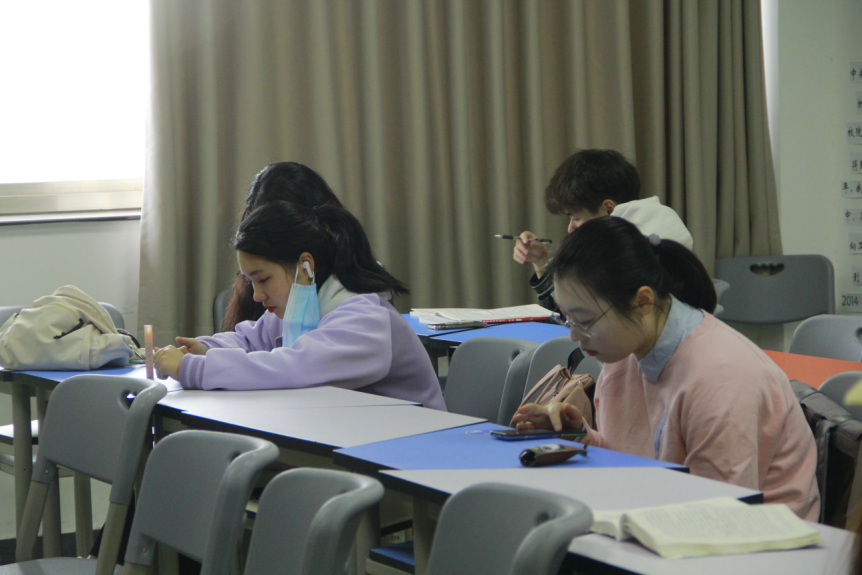 走进候场室,我们可以看到,前来参与志愿者面试选拔的同学们正在紧张地准备着:完善自我介绍,思考表达方式……同学们将在这里抽取面试的题目,做最后面试的准备。严肃认真的神情,正是对本次活动最郑重的态度。