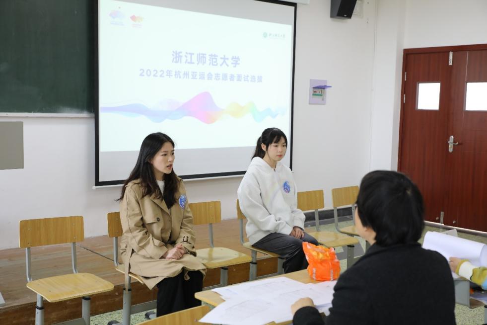 本次面试分3组同时开展,每组3名面试官司,对学生语言能力、礼仪形象、应变能力、交往能力等多方面进行综合评判,最终将预录用56名亚运会志愿者,他们将分配到亚运会志愿工作等多个岗位。