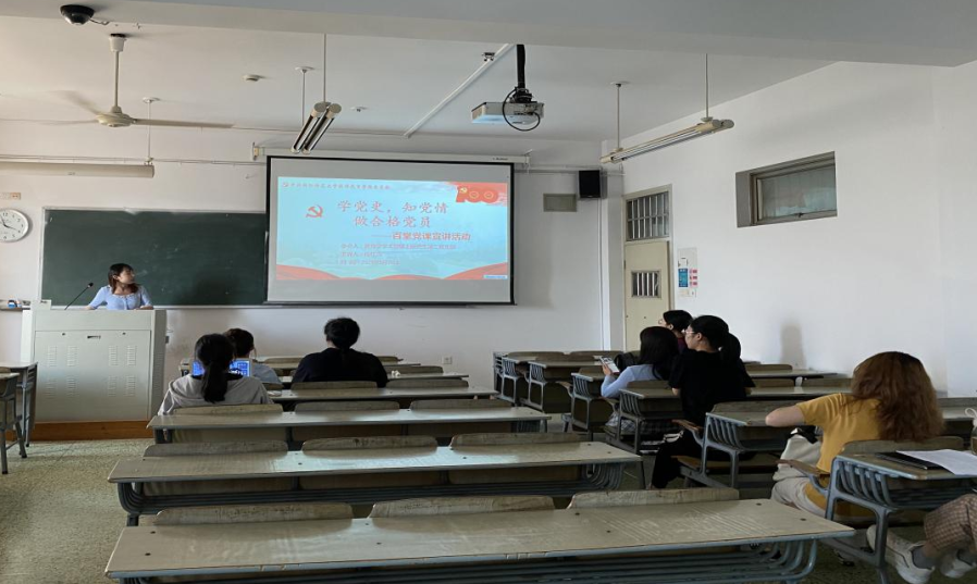 为引领学生党员学党史守初心,增强使命感和责任感,5月19日下午,教师9001jcc金沙以诚为本教育学学术型硕士研究生第二党支部书记以“学党史 知党情 做合格党员”为主题,在5幢102教室为支部党员上了一堂别开生面的党课。