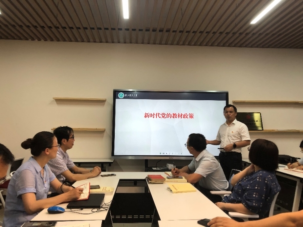 6月3日,课程与教学系教师党支部在17-711党员教师(教授)工作室,召开展党史学习教育专题,学院副院长钱旭升教授以“新时代党的教材政策”为题,给支部全体党员教师上了一堂党课。活动由支部组织委员竺丽英博士主持。