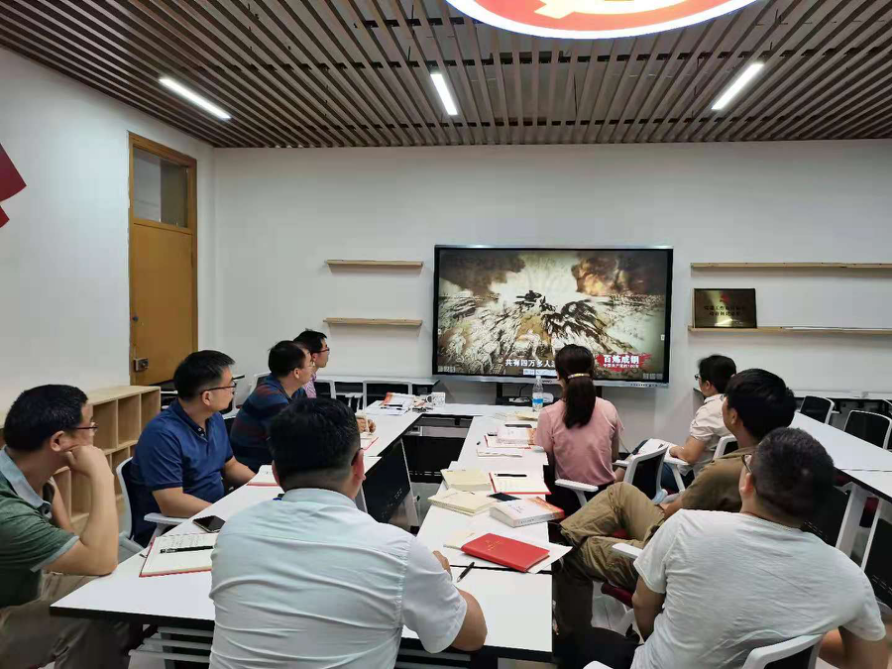 党课最后,朱剑博士特意准备了一段中央电视台制作的纪录片《百炼成钢——千里跃进大别山》,各位教师党员进一步学习刘邓大军千里跃进大别山的英勇事迹和伟大精神。