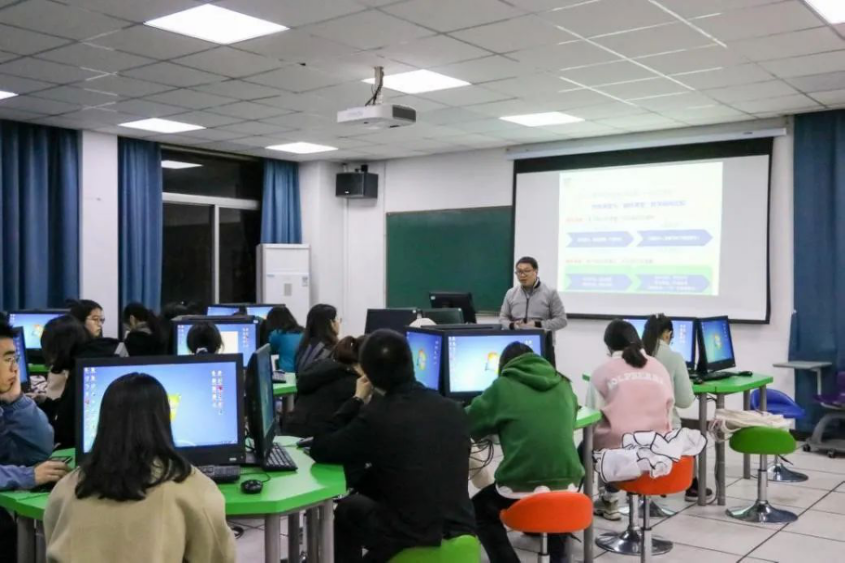 “实践出真知”,在听完老师的讲解后,同学们开始自行操作电脑进行微课制作的实践。老师带领着同学们运用录课视频软件一步一步探索微课制作的秘密,台下的同学们都通过自己的实践操作学习掌握到了录课、剪辑等技能。此外,老师还结合自己的评课经历,给同学们提供了许多有益实用的建议,比如微课评分中很重要的一点是视频的清晰度等等,令同学们受益匪浅。