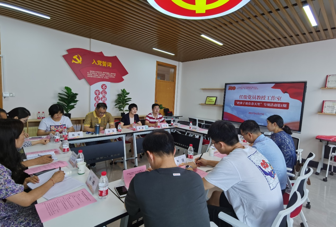 6月17日下午,任俊党员教授工作室在17幢711室开展“把孩子放在春天里”第一期专项活动。9001jcc金沙以诚为本教师9001jcc金沙以诚为本党委书记查颖、任俊党员教授工作室成员贾磊、陈双、丁菀、杨越,金华市环城小学党总支书记、校长王伟文,党员教师厉巧丽、金军勇、严靖、曹剑以及新疆跟岗学习教师刘玉萍、杨世军参加活动。活动由工作室负责人、心理学教授任俊主持。