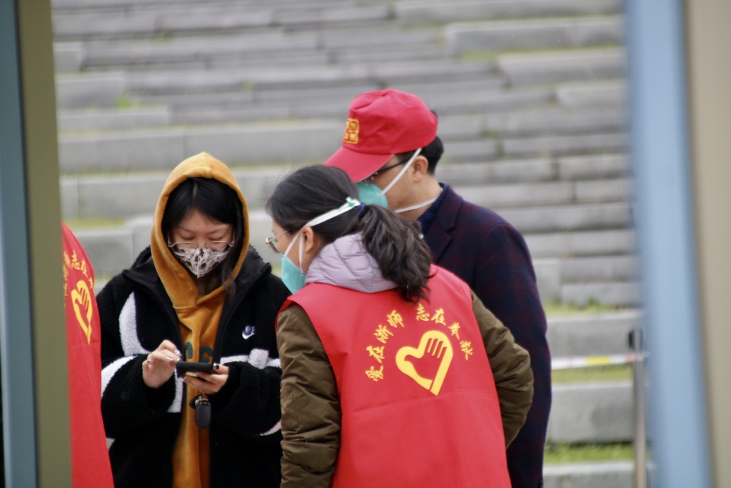 这里是教院师生紧张有序的检测一线