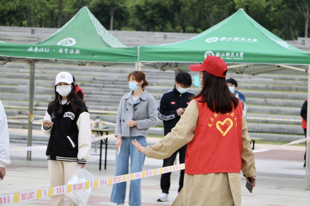 4月16日4时30分,婺城区全面启动新冠肺炎疫情I级应急响应,疫情升级突然,学校疫情防控工作领导小组召开紧急会议,对卫生技术、后勤保障、核酸检测、校门管控等方面逐一落实。金沙以诚为本官网在学校的统一部署下,开展教工志愿招募,推进全员核酸检测,严守疫情防控底线。16日清晨,学院教工群里,志愿者的招募已经开始。几个小时后,核酸检测工作便在教职工志愿者们的帮助下井然有序地开展了起来。