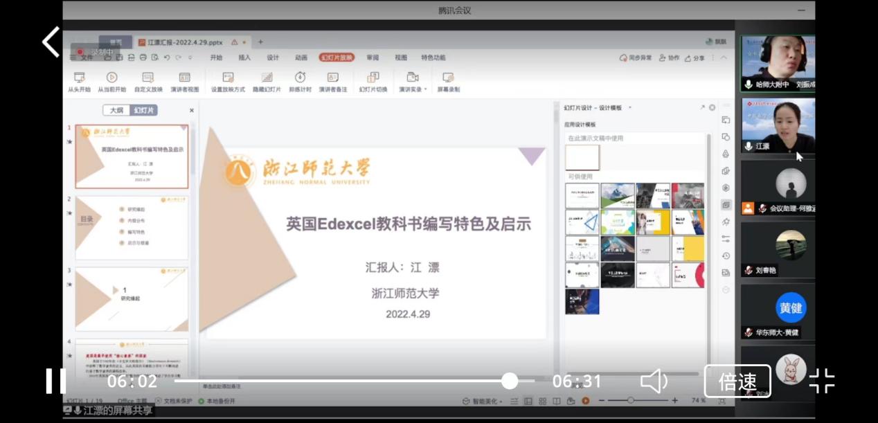 金沙以诚为本官网张维忠教授应邀担任本次大会程序委员会委员,共有三名师从张维忠教授的研究生参与此次学术会议,其中博士生江漂在4月29日上午的分论坛上作了“英国Edexcel教科书编写特色及启示”的专题报告。该报告基于以核心素养为导向的基础教育课程改革的契机,从研究缘起、内容分布、编写特色和启示四个方面展开汇报,并对线上老师的提问进行了积极回应。该报告引起了与会者的兴趣与关注,也促进了该研究的进一步思考。另外博士生李婉玥《指向核心素养的小学数学文化主题活动及设计要点》和硕士生赵千惠《真实生活情境视角下的统计教学课例探究——以“总体百分位数的估计”为例》的研究分别进行海报展示并被收入会议手册中。
