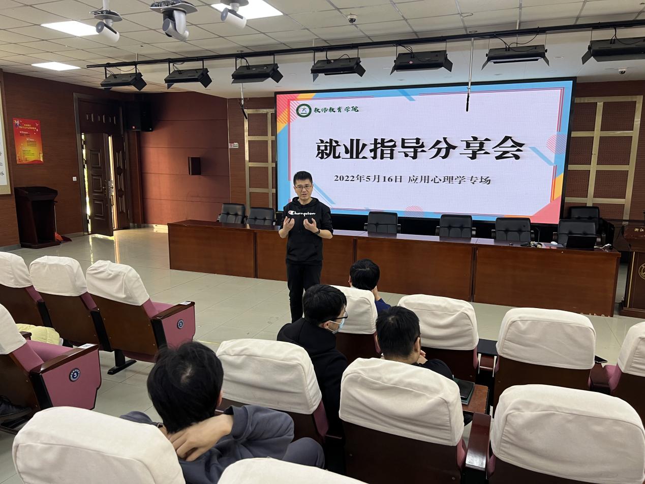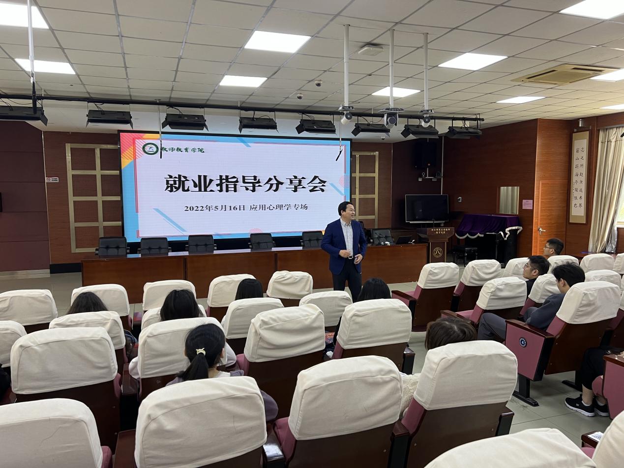 2022年5月16日,教师9001jcc金沙以诚为本于17-112报告厅开展了2022届未就业本科毕业生指导帮扶活动,应用心理学、教育技术学专业共40余名本科生同学参加。心理学系主任李新宇,心理学系教师王成、詹沛达、叶群,教育技术学系主任张家华,教育技术学系教师、毕业年级班主任毛刚、何文涛,毕业年级辅导员张文潇与会指导。