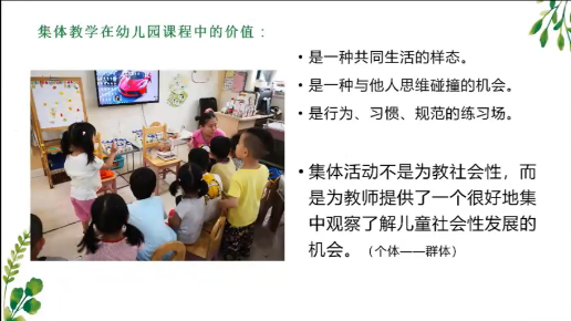余巧娟名师网络工作室团队则以《校园文化背景下的园本课程建设》开展团体展示,先由吴晨晨、冯武仙两位工作室成员分享了义乌市宾王幼儿园的两门班本课程故事《我和大樟树的故事》、《自制麦芽糖》供学员建立直观。随后,特级教师余巧娟老师作了题为《校园文化背景下的幼儿园园本课程建设》的讲座,从一线管理者的角度和老师的角度把宾王幼儿园和其文化背景下园本课程的思考与实践经验做了介绍。