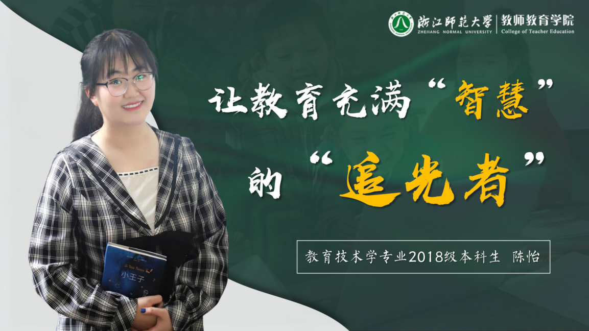 陈怡,教育技术学专业2018级本科生,现已保研至华东师范大学。本科期间,连续三年综合评价、发展评价、能力评价等多项指标位列专业第一,曾获国家奖学金、浙江省政府奖学金,全国计算机大赛二等奖、省电商大赛一等奖等90余奖项,其中省级以上近20项。