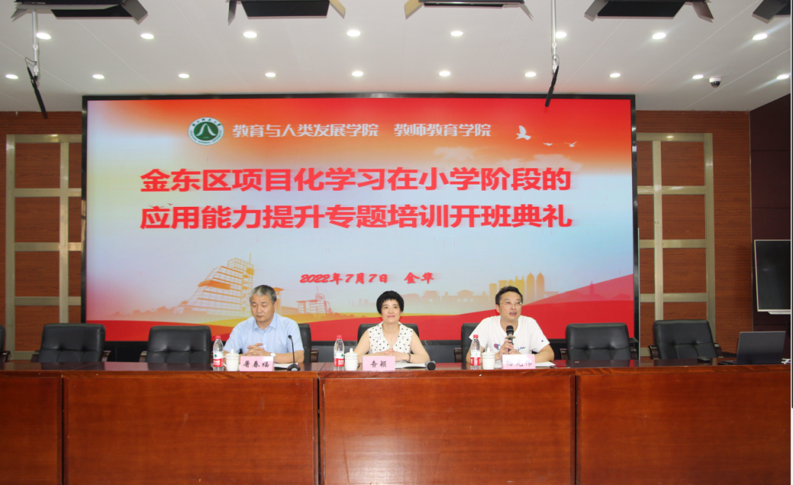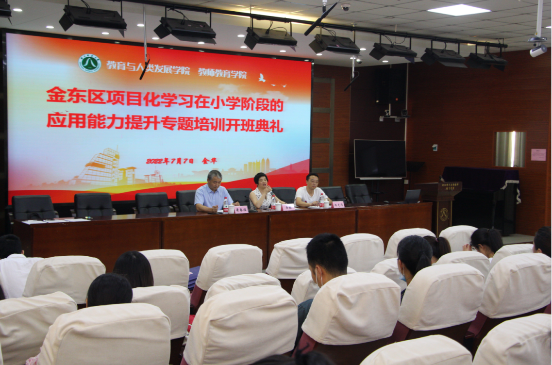 7月7日上午9:00,9001jcc金沙以诚为本教师9001jcc金沙以诚为本举办了金东区项目化学习在小学阶段的应用能力提升专题培训的开班典礼,9001jcc金沙以诚为本党委书记查颖致辞,金东区教育体育局教育中心屠春福讲话。全区70多名小学骨干教师参加培训。