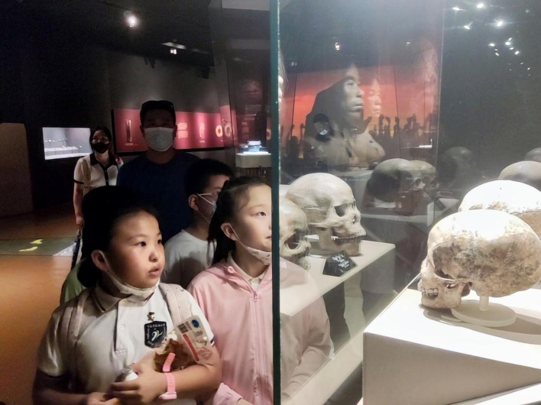 实践队成员作为孩子们的专属小导游,带领学生们一同参观河姆渡遗址博物馆,从劳动教育的角度为他们介绍河姆渡文化。当看到书里的内容真实地出现在眼前,孩子们的眼中都闪烁着惊喜的光芒。