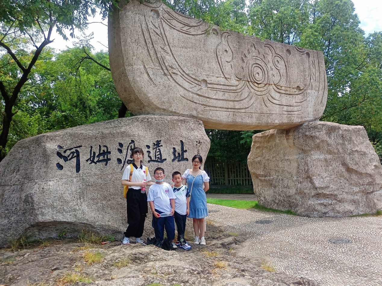 在实践活动的尾声,成员们总结了将河姆渡文化融入劳动教育的经验,希望这种结合能走出余姚,走向全国。半个月的时间说长不长,说短不短。在烈日下满街采访,在遗址树丛间穿梭来回,牵着孩子们的手踩过水沟……“这次实践,孩子们与我们都收获颇丰。”
