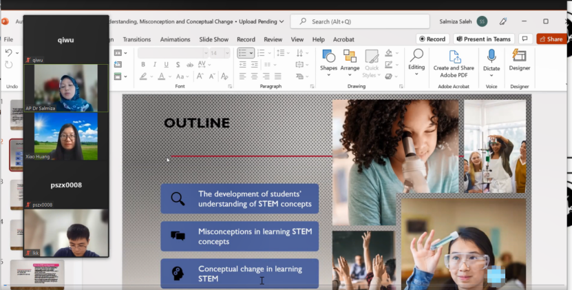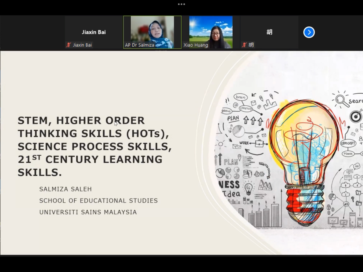 11月1日、2日,来自马来西亚理科大学副教授Salmiza Saleh博士就“STEM教育面临的问题与挑战”、“STEM教育:科学过程技能、高阶思维技能和21世纪学习技能”和“STEM学习中的学生的概念理解、错误概念及概念转变”三个主题进行了在线分享,讲座由9001jcc金沙以诚为本教师9001jcc金沙以诚为本副院长黄晓教授主持,参加讲座的有高校教师、研究生及从事理科教育的一线教师。