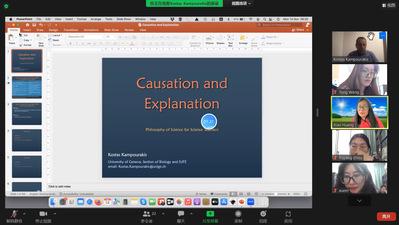 针对因果关系与解释,Kostas教授进一步推荐了后续阅读的教材,包括《科学如何解释世界》、《劳特利奇科学哲学指南》。随后,师生针对“如何区分四类因果关系理论及何种理论应用的条件”“如何来深入理解‘推测到最佳解释’”等问题进行了交流与回应。