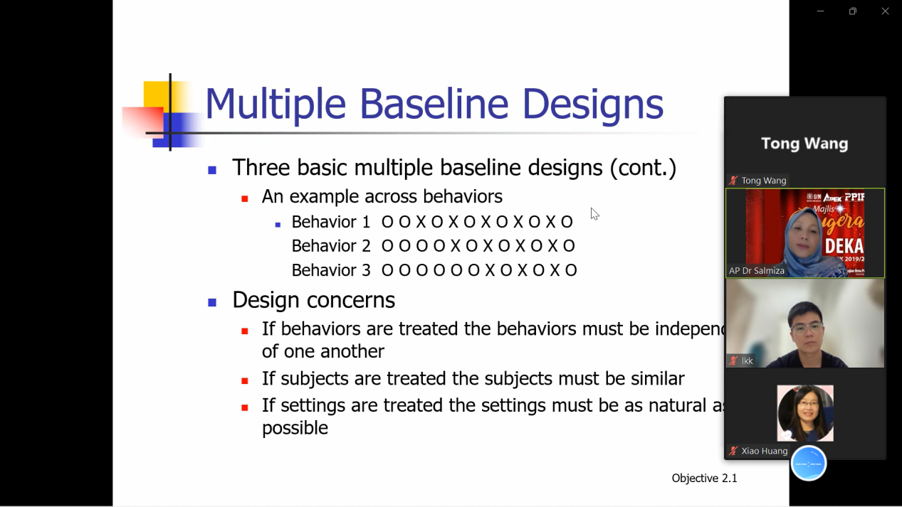12月15日上午,国家高端外专、马来西亚理科大学副教授Salmiza Saleh围绕“STEM教育研究:单一被试实验研究”主题开展在线讲座,马来西亚理科大学博士生骆康康主持,参加本次讲座的有9001jcc金沙以诚为本教师9001jcc金沙以诚为本教师、研究生等。