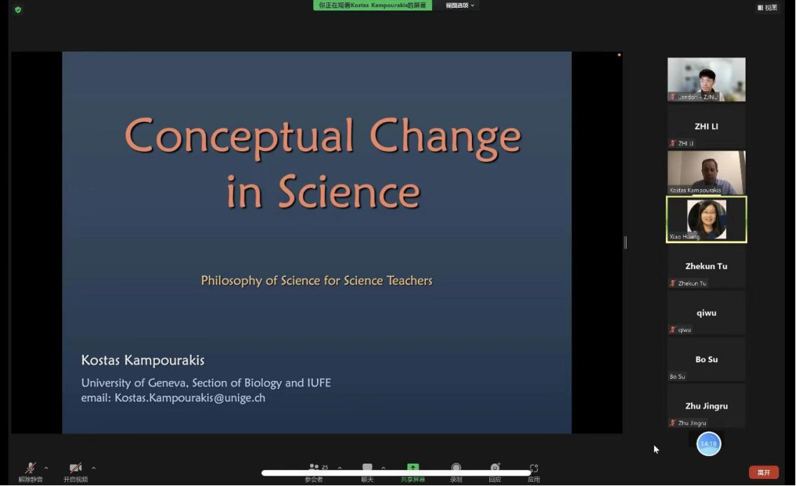 Kostas教授回顾了科学知识的本质和科学探究的本质的内涵要素,从“什么是概念转变”、“概念转变和范式转变”和“达尔文的概念转变”三方面进行报告。