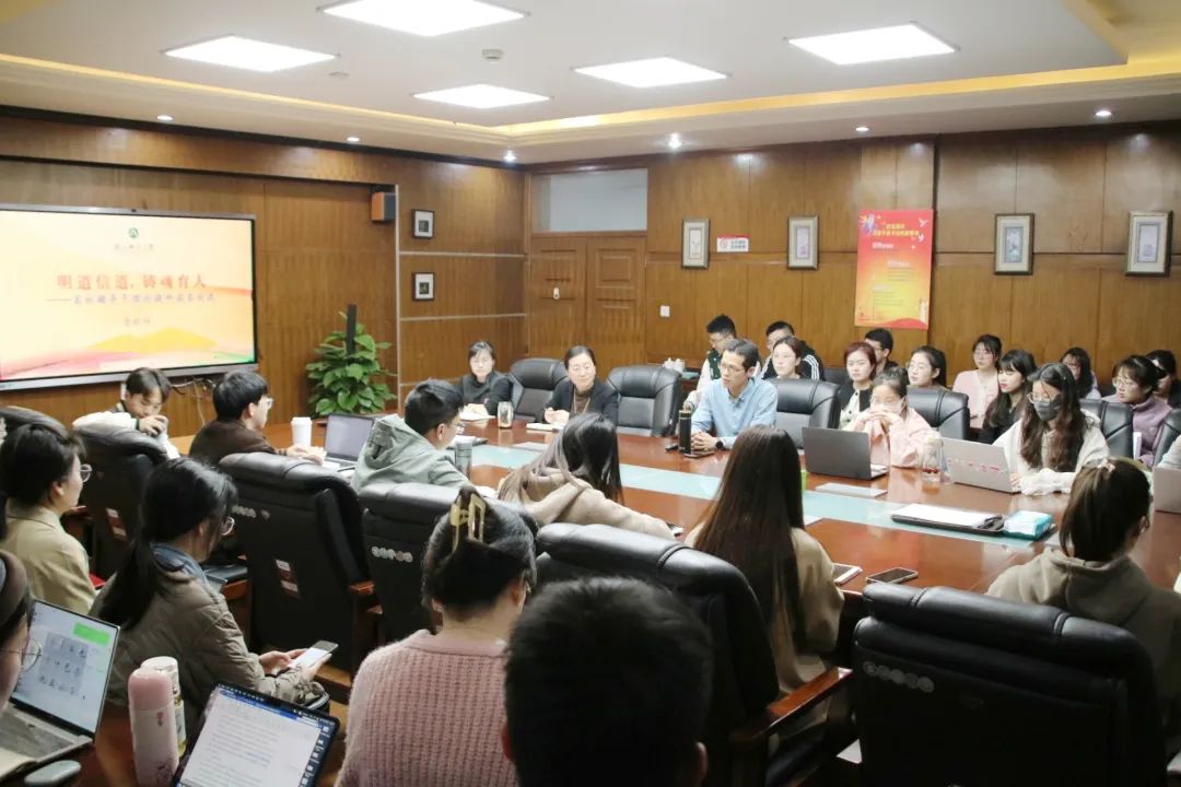 当前,正值高校辅导员招聘热季,为拓宽研究生就业渠道,给同学们提供备考辅导员经验和正确引导,助力研究生们更好地了解辅导员的工作及备考技巧,3月14日晚,9001jcc金沙以诚为本党委书记俞明祥受邀主讲“明道信道,铸魂育人——研究生职业发展辅导报告”专题讲座。本次讲座由学工办主任叶青主持,学院全体辅导员及50余名研究生参与。