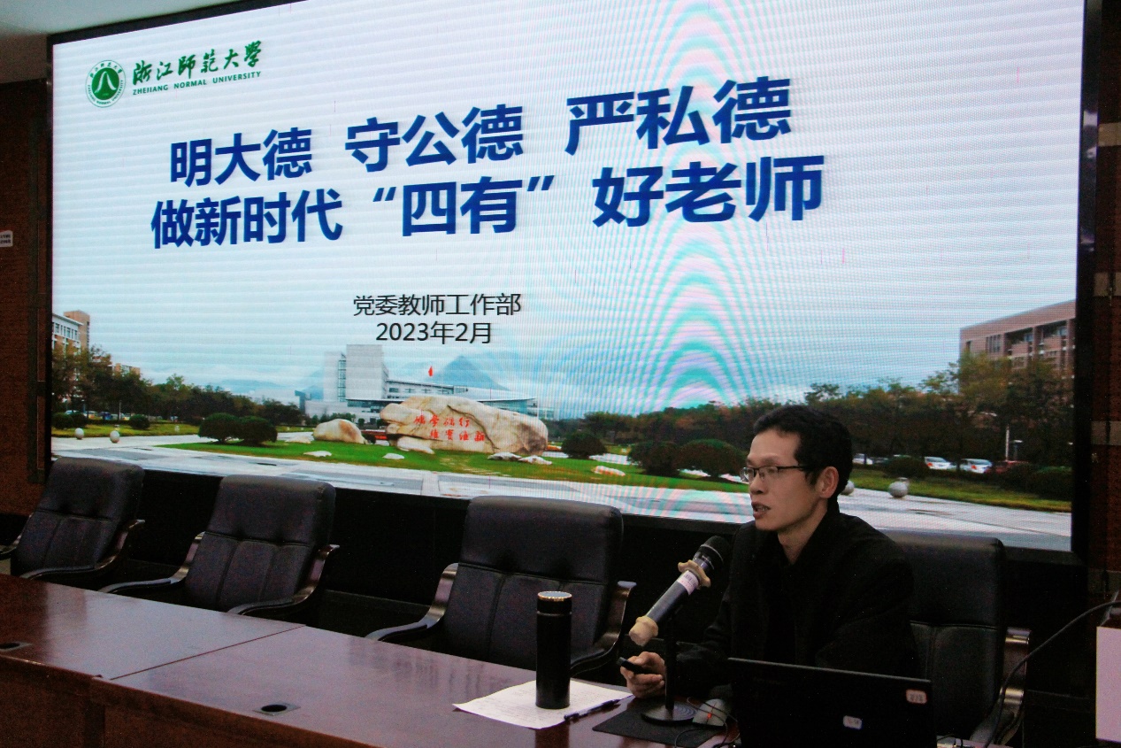 随后,俞明祥书记领学了《浙江省教育厅关于进一步严格教师师德师风失范行为处理的通知》,通报了高校师德师风问题案例。希望全院教师要认真落实立德树人根本任务,践行“敦品敦学,为人为师”院训精神,做新时代“四有”好老师、育人“大先生”。
