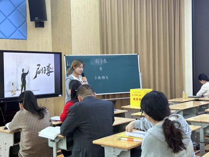 陈蕾西老师为此次盛宴拉开序幕。陈老师课前精心准备,认真设计教学环节,导入新颖巧妙,以冯骥才的《刷子李》为载体,紧紧围绕本单元语文要素,从文章字词到脉络结构,从读中领悟到文笔仿写,紧扣中心句,层层深入文本,带领学生深入剖析文章“风趣”之精髓,巧妙使用《语文课堂作业本》,减轻学生负担,将“教学评”深入融合。“双减”背景下,有利于学科核心素养在语文活动中落地,同时充分展示了秋小青年教师的风采。