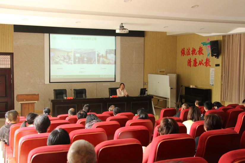 教育技术学系教师党支部副书记杜华以“信息技术能力提升工程2.0赋能乡村教育高质量发展”为题开展讲座。讲座包含“信息技术能力提升工程2.0”“乡村学校如何高质量发展”“教师网络空间建构与应用”以及“技术环境下的专业自主学习”四方面内容。